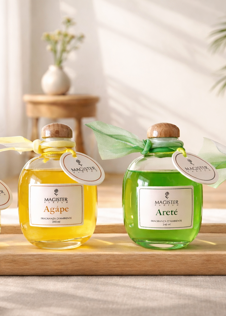 Agápe è una fragranza calda e agrumata che avvolge i tuoi spazi come un abbraccio sincero, portando con sé la dolcezza e la profondità dell’affetto autentico.